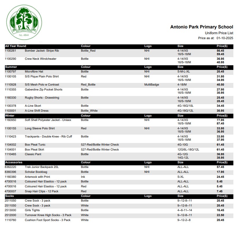 On the first Monday of each month, from 3.00-4.00pm, a parent volunteer operates the second hand uniform shop in our school hall.